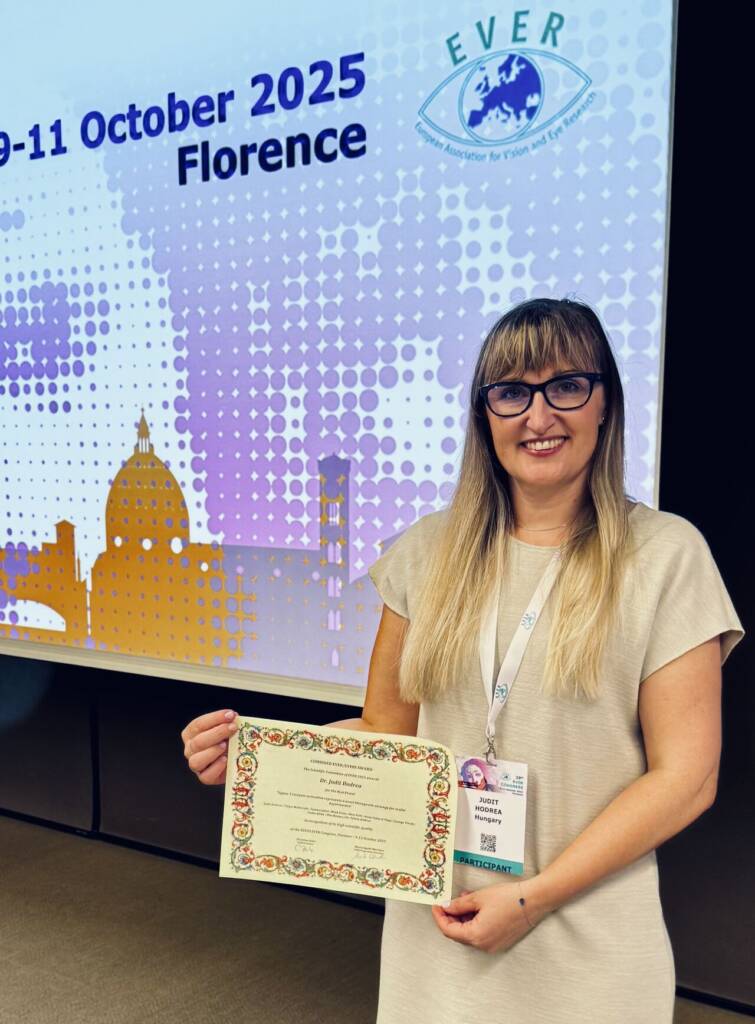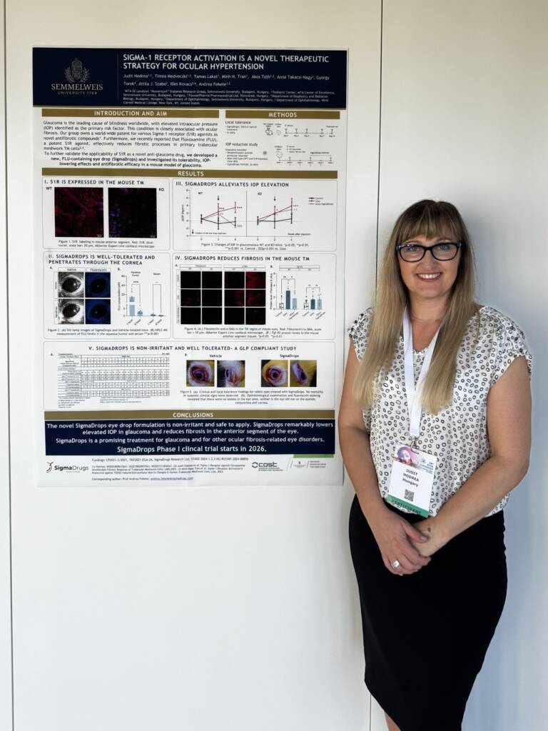 Judit Hodrea (Hungary) presented poster titled “Sigma-1 receptor activation represents a novel therapeutic strategy for ocular hypertension” and received the Best Poster Award! Another poster titled “Sigma-1 receptor agonist fluvoxamine is protective against hyperglycemia-induced fibrosis in human trabecular meshwork cells” was presented by Alexandra Rózsahegyi (Hungary). Photos: Judit Hodrea.