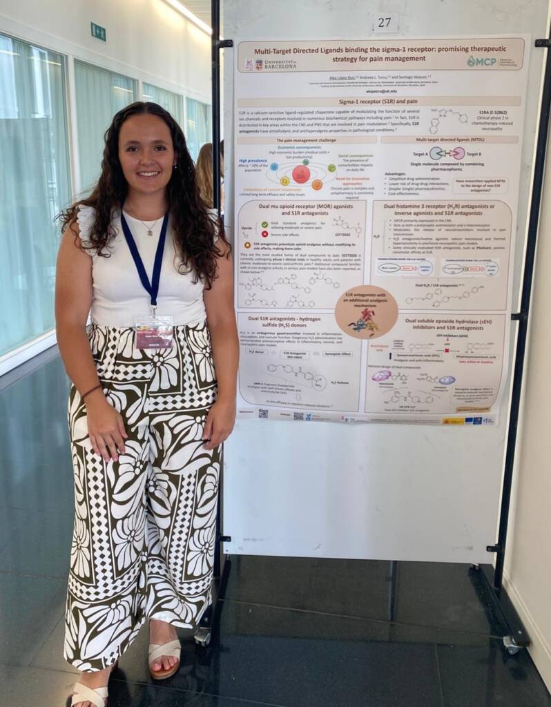 Alba López Ruiz (Spain) participated with a poster presentation on design and pharmacological evaluation of new chemical compounds with dual mechanism of action. Another poster presentation was presented by Javier Sánchez Sánchez-Corral (Spain) titled “Unlocking the power of inhibiting soluble epoxide hydrolase and sigma-1 receptor antagonism through dual mechanism analgesic compounds”. Photos: Alba López Ruiz and Javier Sánchez Sánchez-Corral.